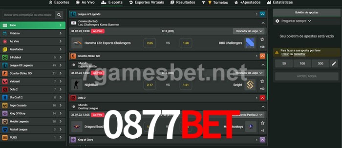 O 0877bet oferece uma grande seleção de opções de apostas em e-sports com probabilidades competitivas